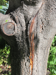 When the tree receives heavy wind or snow loading, these potentially weak crotches can open up very easily and split the trunk below the crotch, sometimes for several feet.